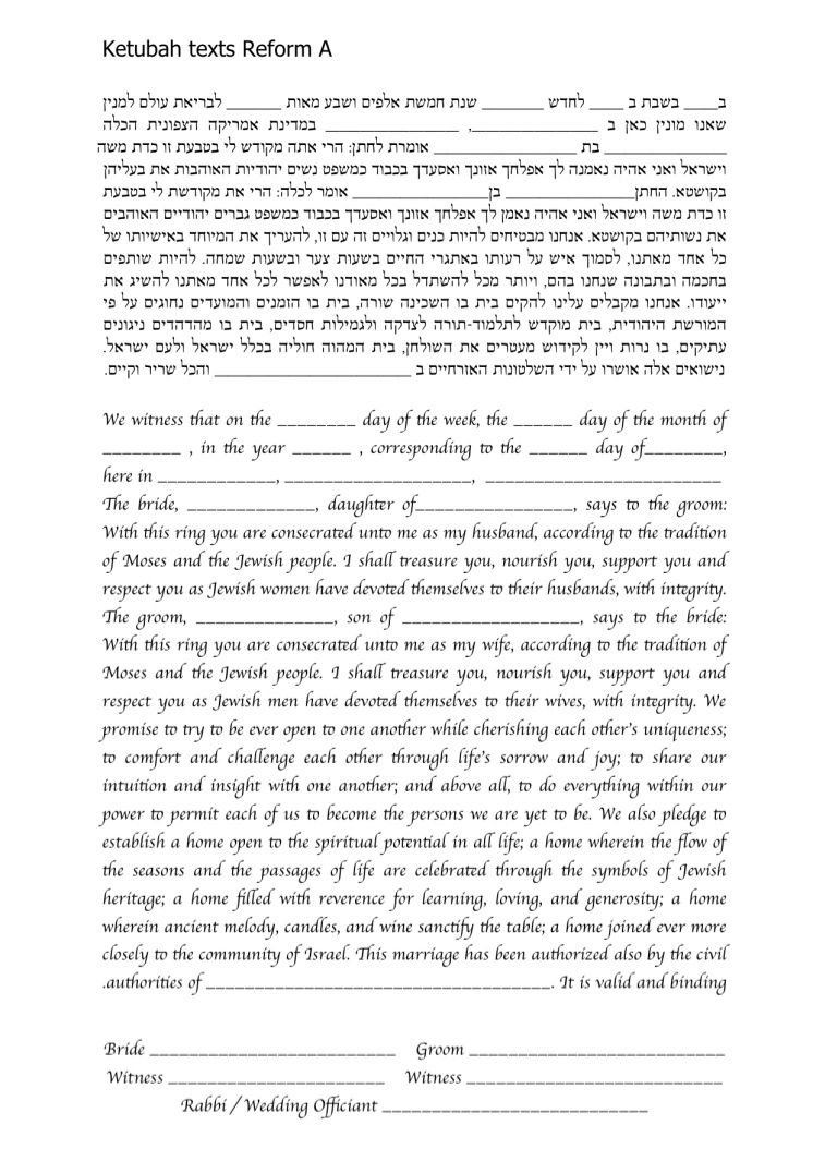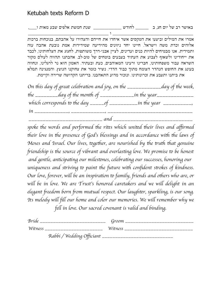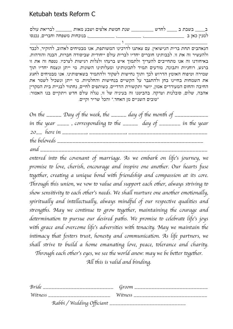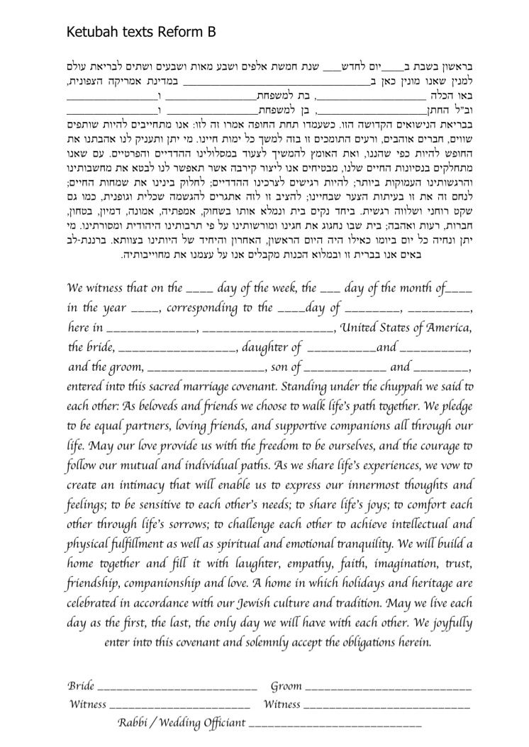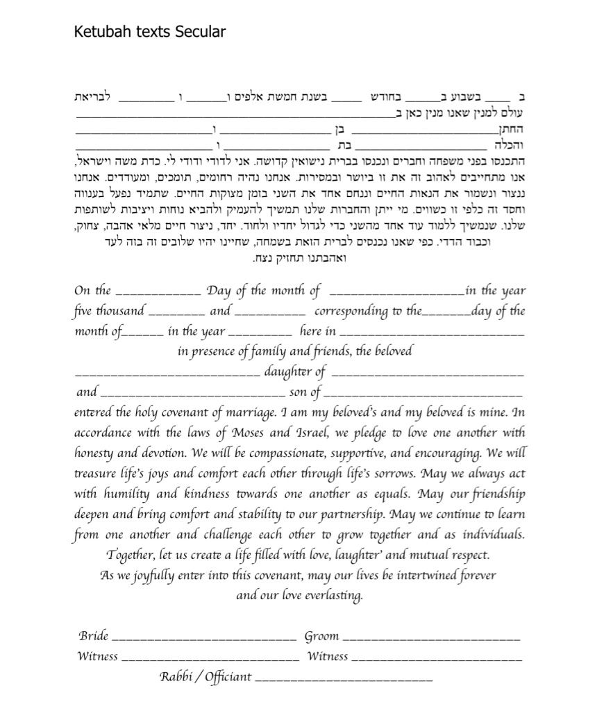 Choose one of the texts shown below, use your own wording or make changes to any of the texts you see here. It is highly recommended to ask your Rabbi or Wedding Officiate which text is right for you.