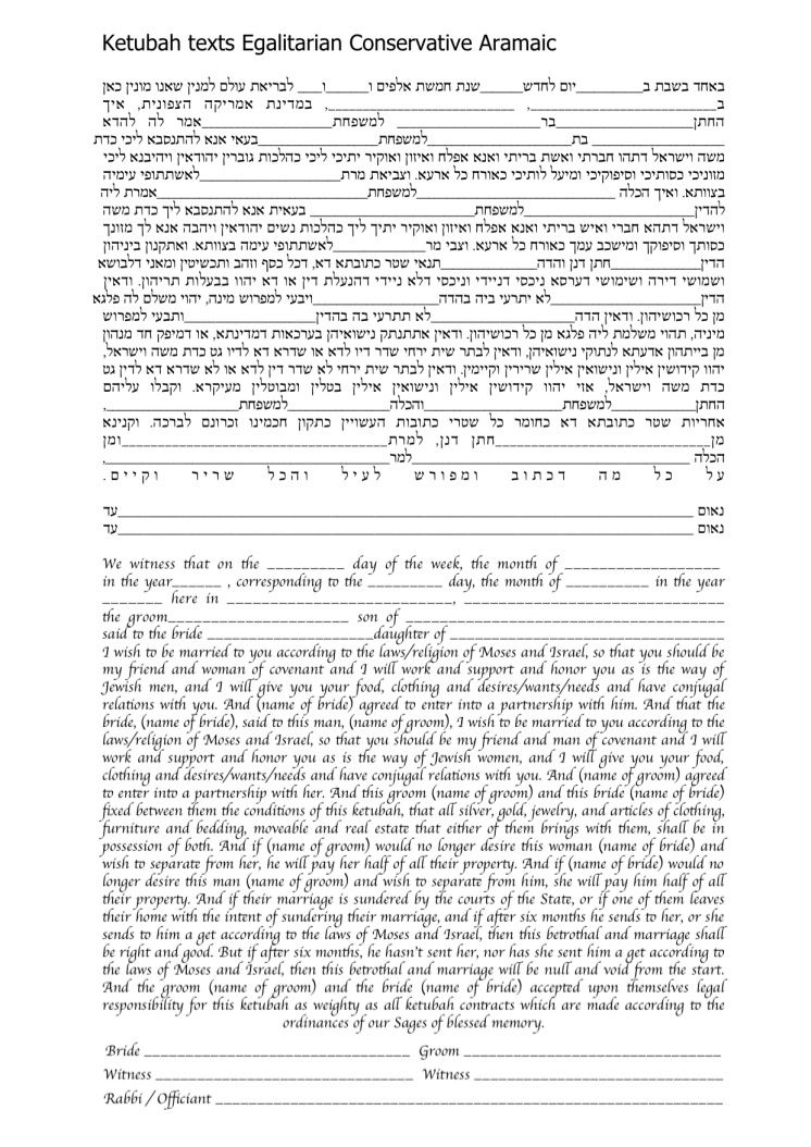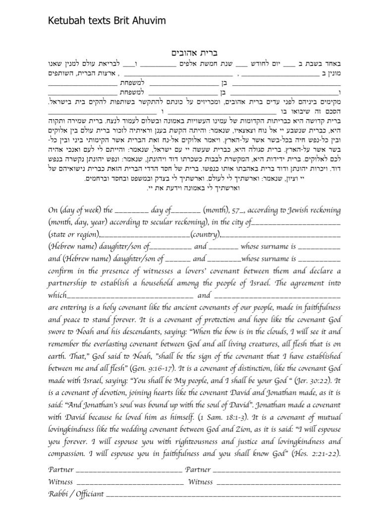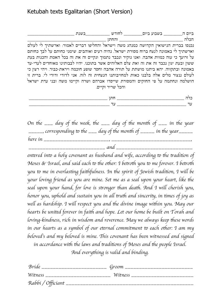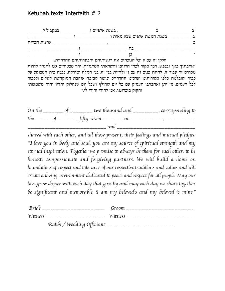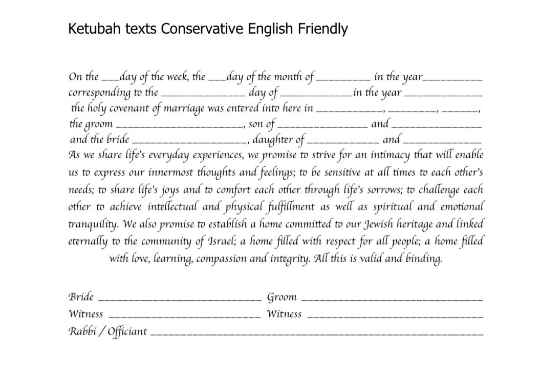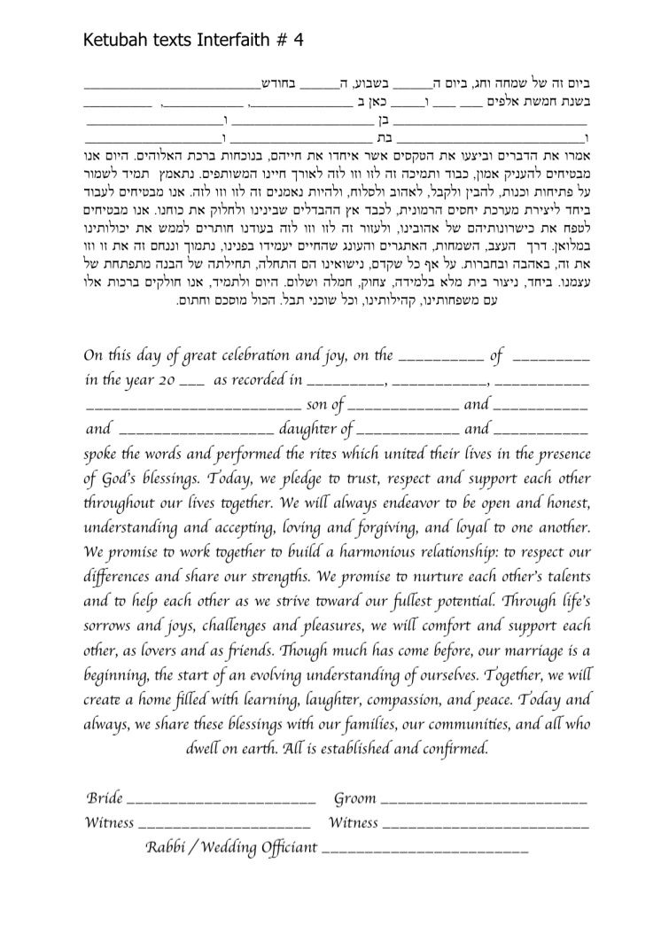 Choose one of the texts shown below, use your own wording or make changes to any of the texts you see here. It is highly recommended to ask your Rabbi or Wedding Officiate which text is right for you.