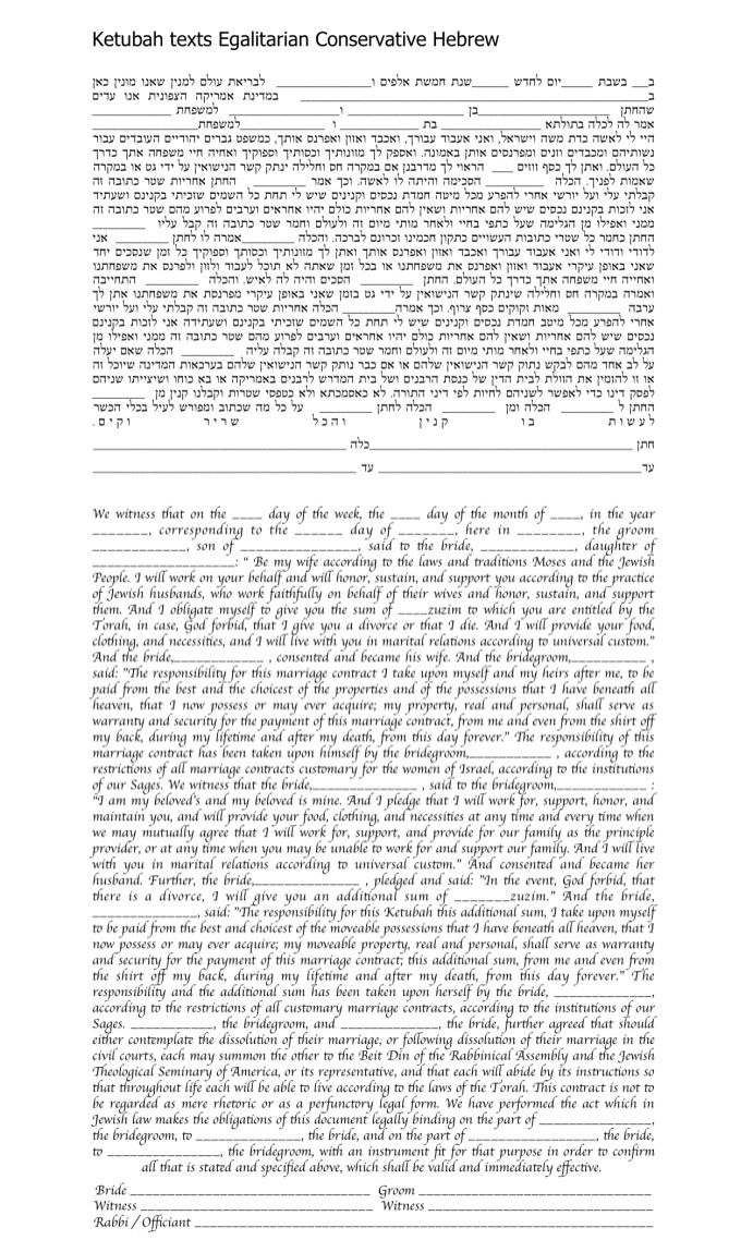 Since each couple is unique and have their own ideas and traditions of how to celebrate their wedding in a meaningful special way, I highly recommend asking your Rabbi / Wedding officiate which Ketubah texts they recommend for you.